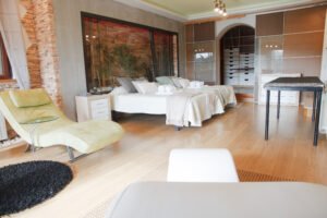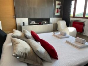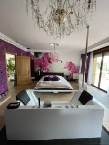 Diferente por la amplitud de sus habitaciones (la suite principal supera los 70m2), su potente decoración y su diferenciador equipamiento (la suite principal cuenta incluso con sauna). La idea es que disfrutes tanto fuera, con la compañía del resto de amigos, como dentro, en la intimidad de la habitación con tu pareja.
