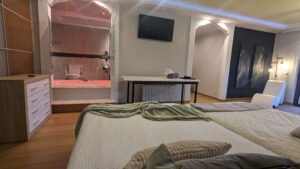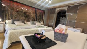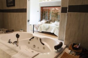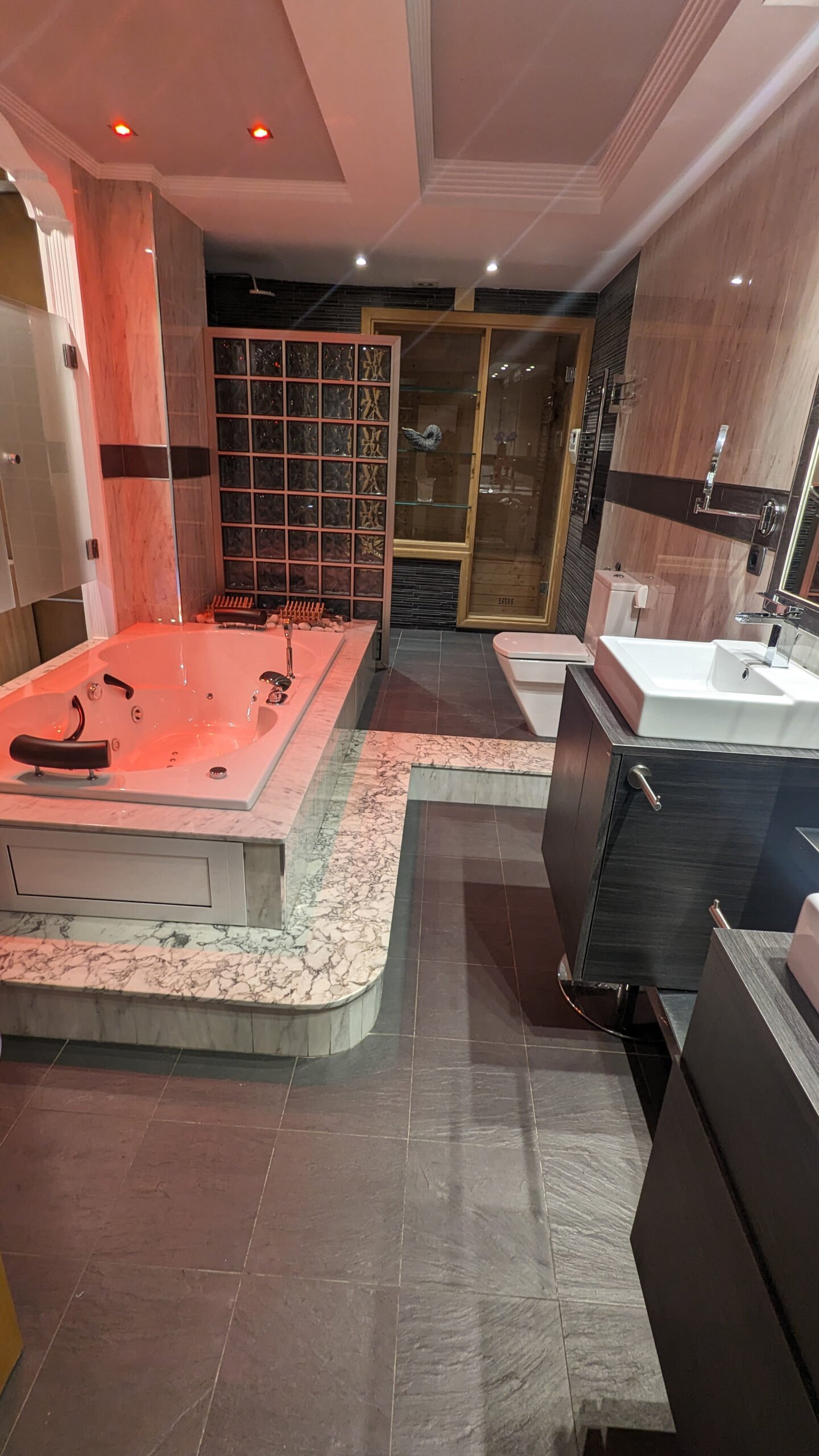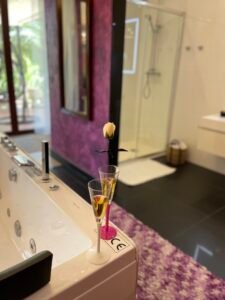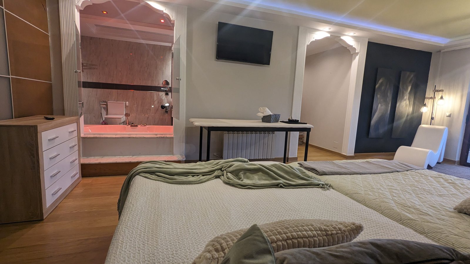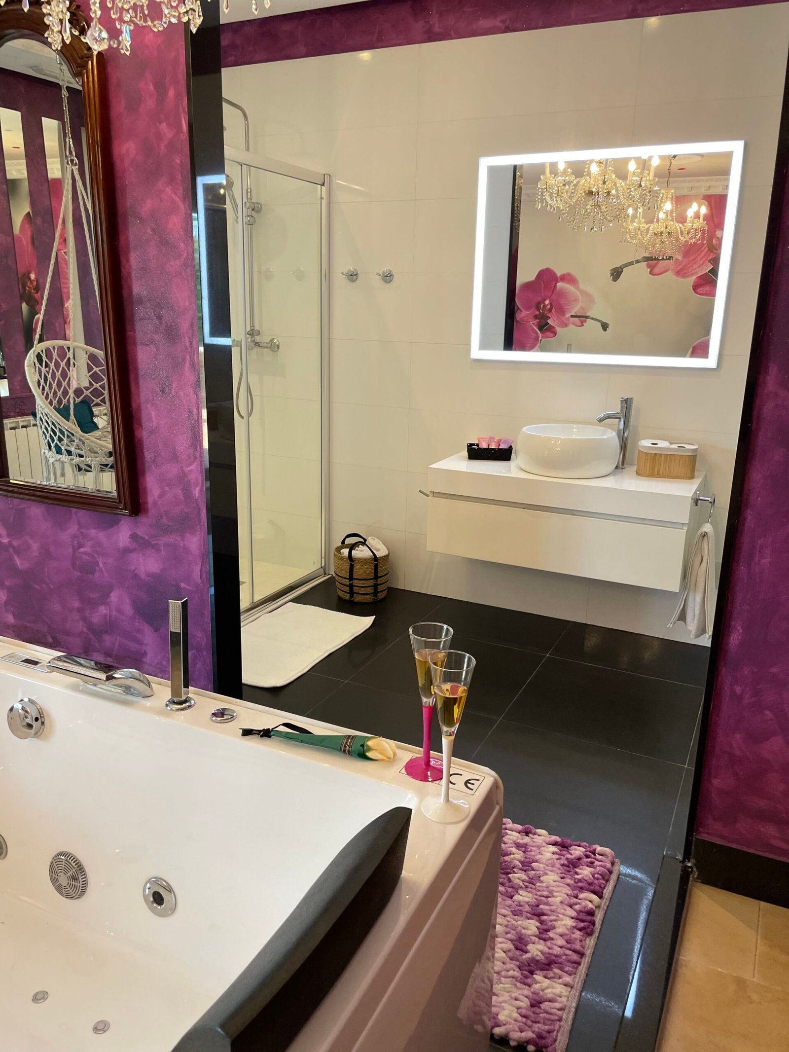¿Llegáis cansados de un largo día de surf y playa? ¿De recorrer algún sendero escondido por los valles de Cantabria? ¿De cenar en alguno de los buenísimos restaurantes que tenemos en la región? ¿O simplemente de ir de compras por Santander, a escasos 15 minutos en coche? Apagad todas las luces salvo la tenue luz roja que ilumina el jacuzzi, conectad al mismo el bluetooh de vuestro smarphone, música relajante… cerrad los ojos… y disfrutad el momento.