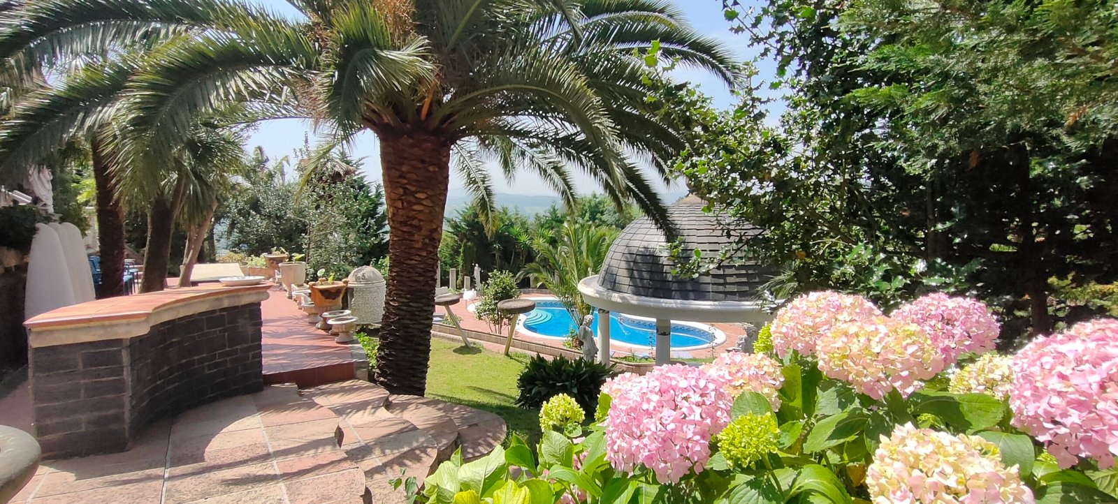 Yucas, palmeras, pinos y bambú hacen de parapeto natural para que disfrutes de intimidad cuando estés tomando el sol en las tumbonas y hamacas que pueblan la zona de solarium. Ideal para descansar del bullicio que se vive en Cantabria cada verano, o para esa celebración especial que tienes en mente.