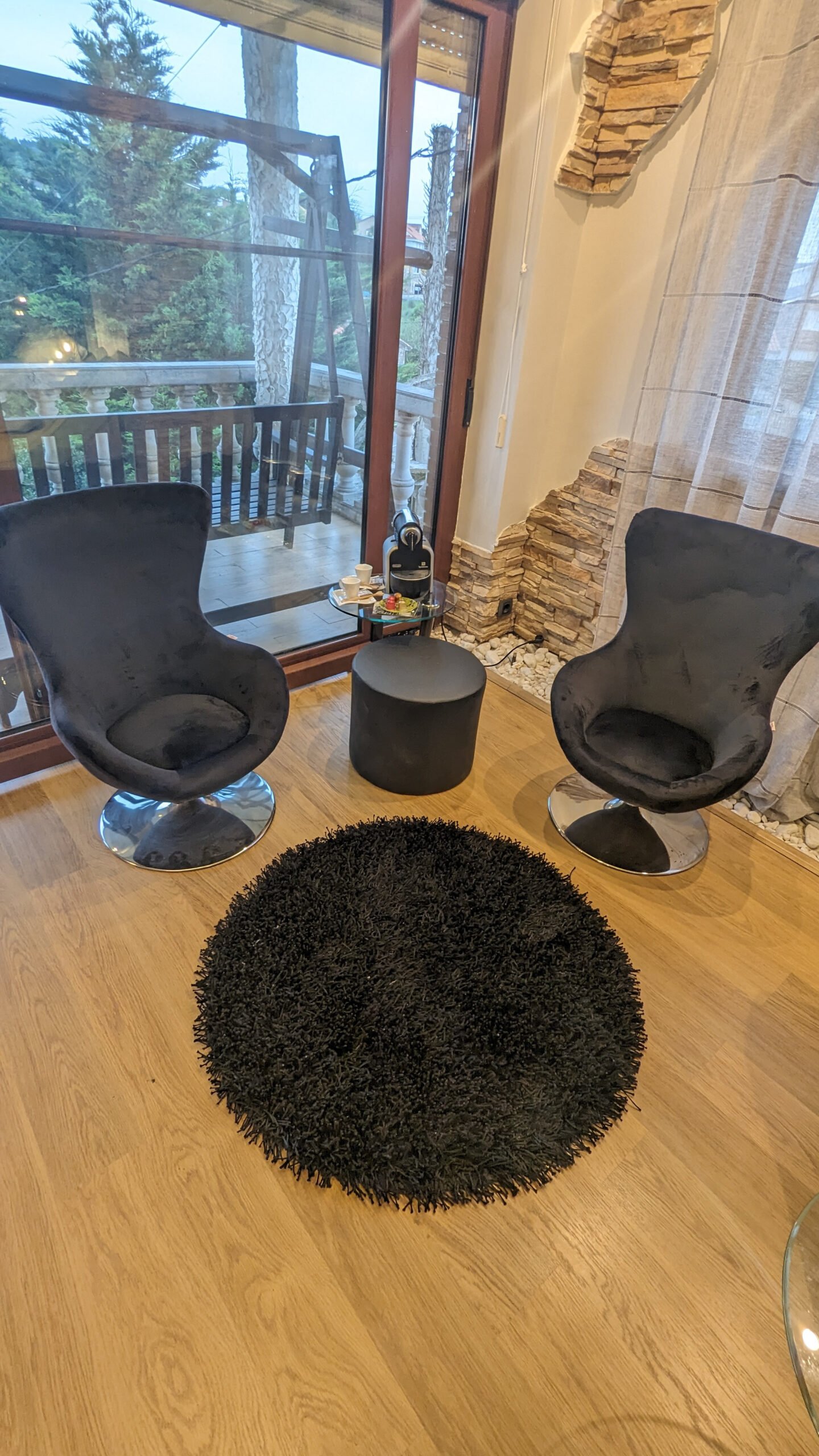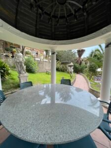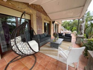 La amplitud de la villa es tal que permite ofrecer múltiples espacios donde perderte…o encontrarte. Ya sea un grupo de amigos compartiendo vacaciones, un cumpleaños que desees celebrar en especial, una cata de vinos, una fiesta de disfraces,…. El primero de ellos, al lado de la entrada principal, una terraza orientada al sur y resguardada de los vientos del norte que soplan en el invierno cántabro, ideal para tomarte un cafecito después de degustar un buen cocido montañés o una deliciosa paella (solo tienes que pedírnoslo).